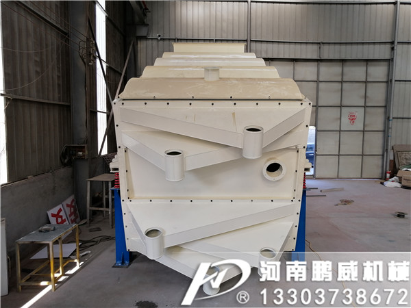 沸騰篩工作運轉的獨特之處在于篩子具有雙重振動原理和彈性篩板,即由主篩體的線性振動和浮動篩框的附加振動組成的雙重振動系統,產生相對運動。而且在振動過程中,具有彈性的聚氨酯篩板高頻率反復做張緊、松弛運動來拋擲物料,使篩上物料產生加速度,不僅可有效防止黏濕物料黏滯篩板,而且可以防止細粒物料堵塞篩孔,顯著提高了篩分效率。沸騰篩的名字也因此而來,微粉物料在篩面上做彈跳運動,由于粉末極細,產能又高,物料在篩面上用肉眼看上去就像沸騰的燒開的熱水一樣,十分壯觀,由此得名“沸騰篩"!