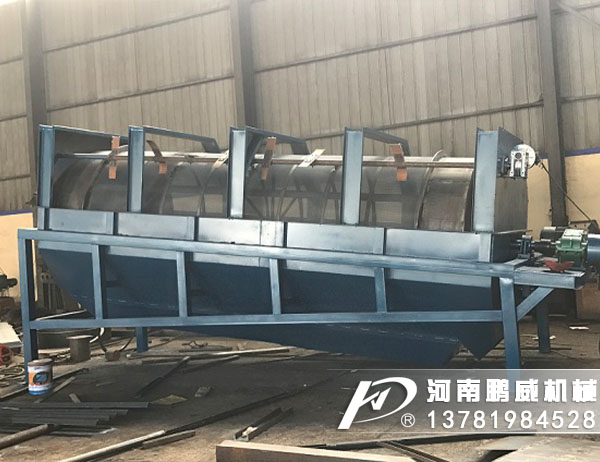 滾筒篩是分選技術(shù)中應(yīng)用非常廣泛的一種機(jī)械,是通過(guò)對(duì)顆粒粒徑大小來(lái)控制垃圾分選的,分選精度高。滾筒篩的筒體一般分幾段,可視具體情況而定,篩孔由小到大排列,每一段上的篩孔孔徑相同。 為了提高分選精度,為了避免小顆粒物料在大孔徑篩分段被篩分出來(lái)的情況,垃圾在滾筒篩中必須經(jīng)過(guò)充分的翻料,而且垃圾的移動(dòng)速度不能過(guò)快。通常在滾筒內(nèi)壁都會(huì)裝上撓板,它的作用就是提升垃圾顆粒,讓不同粒徑的垃圾顆粒都盡可能有機(jī)會(huì)接觸到篩孔,如果符合孔徑的要求,顆粒就能透篩,達(dá)到滾筒篩分選的目的。 為了提高篩分效率,垃圾在滾筒篩內(nèi)移動(dòng)的速度不能太快,否則將造成篩分不充分、不徹底,因此滾筒篩一般都有比較嚴(yán)格規(guī)定的安裝傾角,通常來(lái)說(shuō)這個(gè)角度為5°,當(dāng)然在實(shí)際情況下,可根據(jù)需要進(jìn)行調(diào)整。