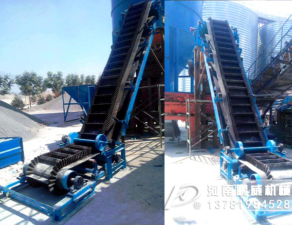 鵬威機(jī)械生產(chǎn)的大傾角皮帶輸送機(jī)可以大角度輸送甚至垂直輸送,采用為具有輸送量大,占地面積小,維護(hù)簡(jiǎn)單等特點(diǎn),廣泛被使用。大傾角皮帶輸送機(jī)的最大特點(diǎn)是采用波狀擋邊輸送帶來(lái)取代普通輸送帶。至于它的工作原理和結(jié)構(gòu)組成,則與通用帶式機(jī)相同。因此,像傳動(dòng)滾筒、拖輥、拉緊裝置、中間機(jī)、中間架支腿、尾架、卸料漏斗、頭部護(hù)罩、空段清掃器、保護(hù)裝置等部件,都可以與通用帶式輸送機(jī)的相應(yīng)部件通用。